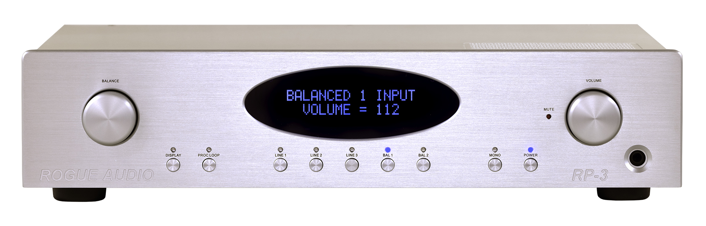 The attractive industrial design includes an easy to read OLED display that further reinforces the preamp's polished and tasteful appearance. The display provides all germane information in large easy to read blue characters. The metal high quality tactile buttons and knobs further add to the finished high-end feel of the RP-3.